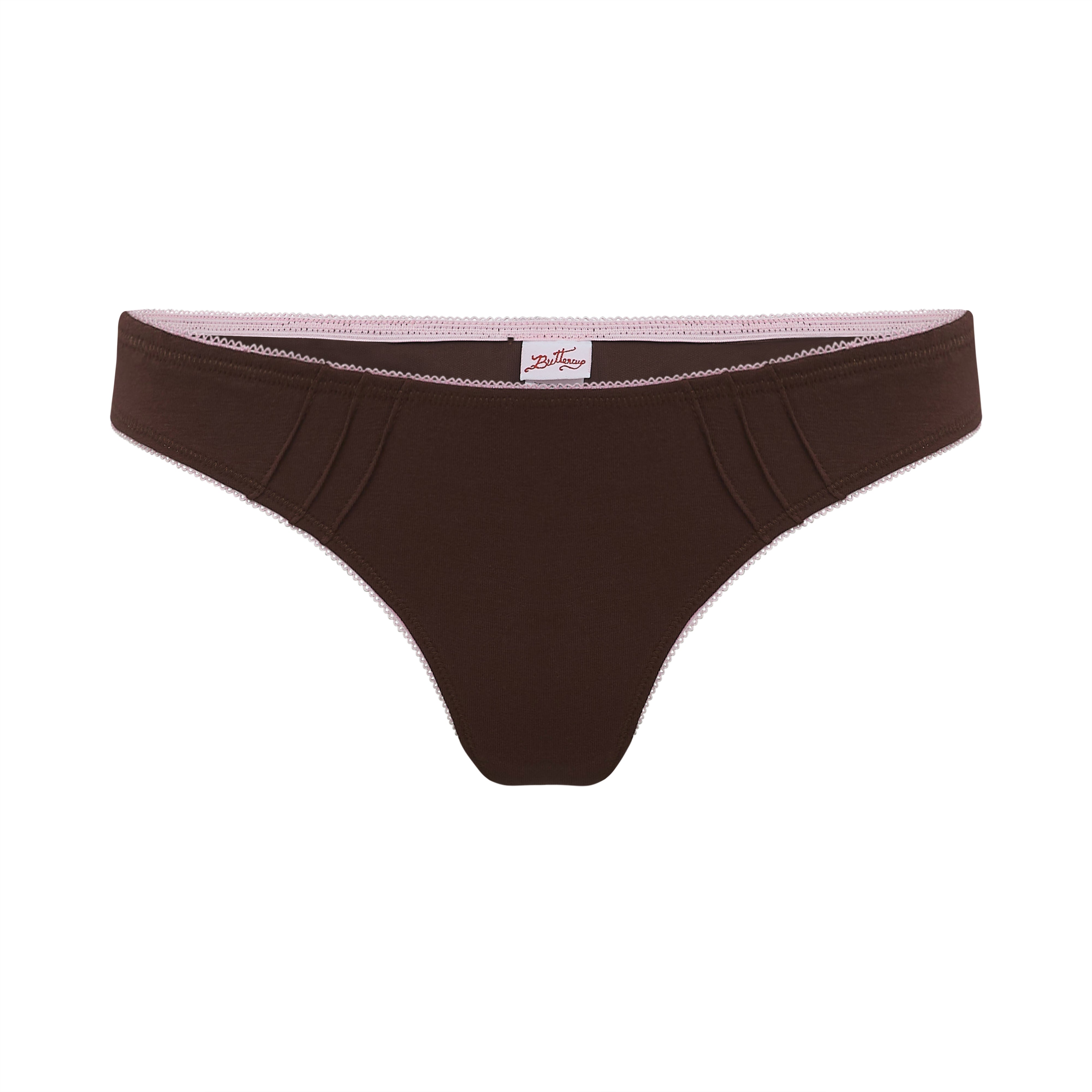 Our thong is so flattering. It's not quite French cut, but it's definitely leaning in that direction - it's kind of French adjacent. Let's call it a Belgian cut! It also has some adorable little seams in the front. Made of our classic organic cotton knit fabric, these undies are super breathable. ☁️